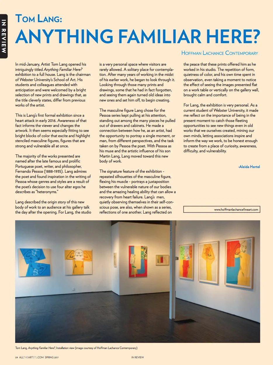 Studio Visit September 29, 2020 Studio visit on the occasion of the exhibition Tom Lang: Scratching at the Cecil R. Hunt Gallery at Webster University.